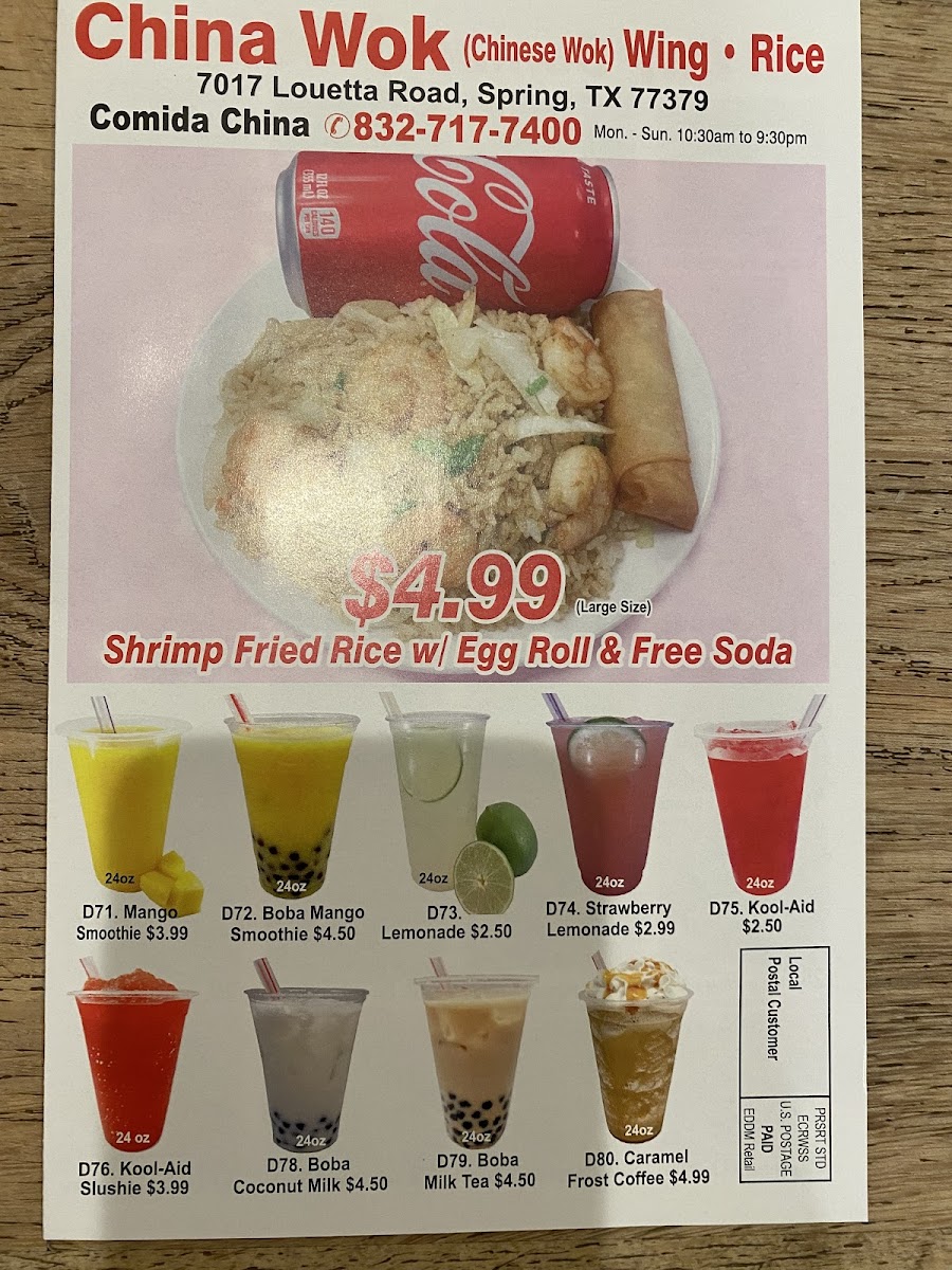 Welcome to China Wok Restaurant Spring, where authentic Chinese flavors meet generous portions and friendly service in the heart of Spring, TX. Located at 7017 Louetta Rd, this restaurant has quickly become a local favorite. The menu features a wealth of dishes, from succulent shrimp and vegetable plates to hearty chicken chow mein and flavorful lomein. Customers rave about the perfect balance of taste and portion size, with meals designed to satisfy even the heartiest of appetites.